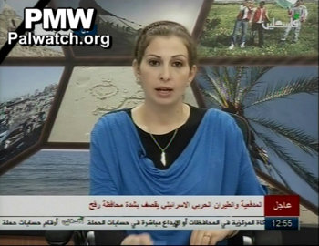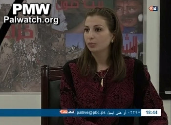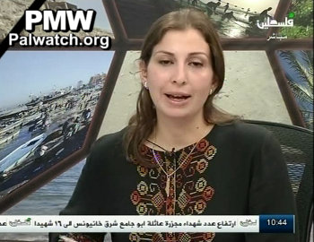A PA TV host wore a necklace with a pendant shaped like a map of Israel and the Palestinian areas: