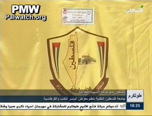 The exhibition’s logo is a map of "Palestine” that includes all of Israel and the PA areas, with the word “Palestine”, next to an image of the Al-Aqsa Mosque.