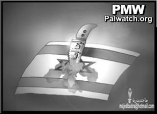Palestinian unity as a knife stabbing IsraelAl-Hayat Al-Jadida, official PA daily |Feb 22, 2007 Cartoon depicting a knife stabbing an Israeli flag.Text on knife: "National unity"