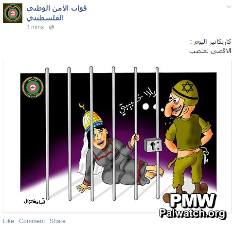Israel is raping Al-Aqsa Mosque - Cartoon posted by Palestinian Authority National Security Forces
