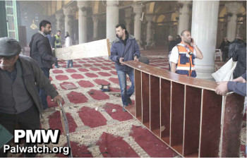 Images showing demonstrations, riots and clashes in East Jerusalem, damage caused to the Al-Aqsa Mosque during riots, and injured people:
