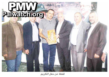 "Fatah’s Salfit branch held a ceremony yesterday [Nov. 12, 2014] honoring its previous board members for their service and for the movement’s success during their tenure. The ceremony was attended by the secretary of Fatah’s Salfit branch, Abd Al-Sattar Awwad, and the branch board [members]."