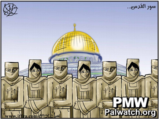 Cartoon: Human wall defends Al-Aqsa MosqueAl-Hayat Al-Jadida, official PA daily |Nov 15, 2014 A cartoon in the official PA daily shows a wall of people using their bodies to defend Al-Aqsa Mosque.Text: "The walls of Jerusalem"