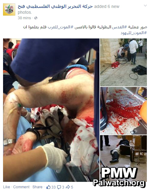 The Facebook page of the "Palestinian National Liberation Movement" posted this graphic image of the attack with the following text:
