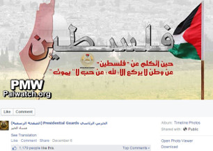 Palestinian Authority’s Presidential Guards post map depicting Israel as PalestineFatah - The Main Page, Facebook|Dec 6, 2014Text on image: “Palestine – When I speak of Palestine, I speak of a homeland that bows down to Allah alone, and of undying love.”