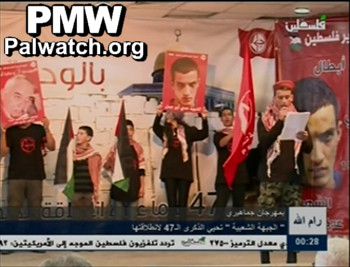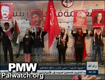 Notes: Ahmad Sa’adat - serving a 30-year sentence for heading the PFLP terror organization. A song at a PFLP event also praised him for planning the assassination of Israeli Minister of Tourism Rehavam Ze'evi in 2001, but he has not been tried for this crime.