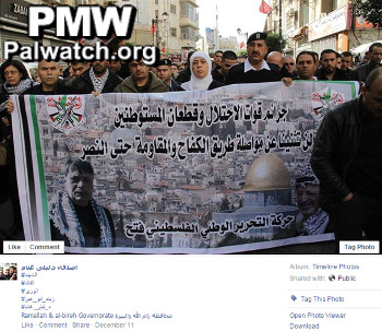 Text on poster: “The crimes of the occupation forces and the settler herds will not discourage us from continuing on the path of struggle and resistance until victory.
