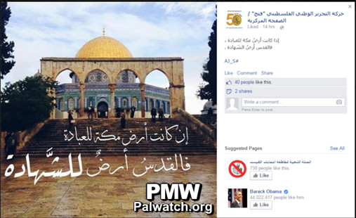 Note: The Facebook page where this item was posted, called "Fatah - The Main Page," is an official Fatah Facebook page. The page defines itself as belonging to the Fatah Mobilization and Organization Commission, and the commission's official website links to this Facebook page.