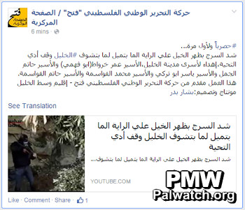 Text and image published on Fatah’s Facebook page, “Fatah – The Main Page”
