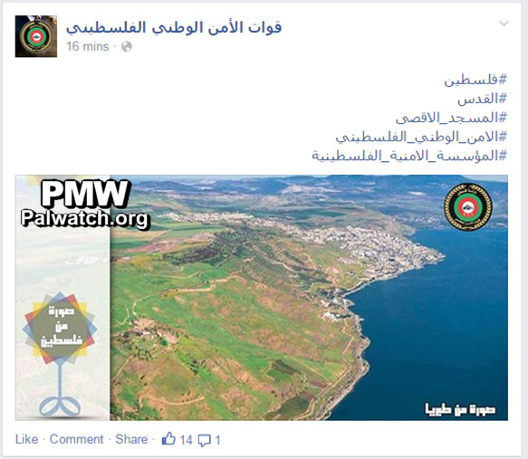 Palestinian Authority Security Forces define Tiberias as "Palestine"PA National Security Forces, Facebook|Dec 22, 2014Text on the right: “A photo from Tiberias”Text on the left: “A photo of Palestine”Click to view bulletin » View analysis citing this item