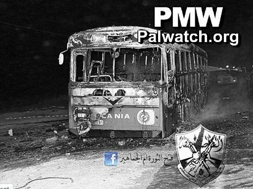 As part of Fatah's celebration of the murders, Fatah posted the above picture of the burned-out bus in which dozens of civilians were murdered by bullets and hand grenades. The terror attack led by terrorist Dalal Mughrabi was the most lethal in Israel's history, when terrorists in 1978 hijacked a bus and killed its passengers.