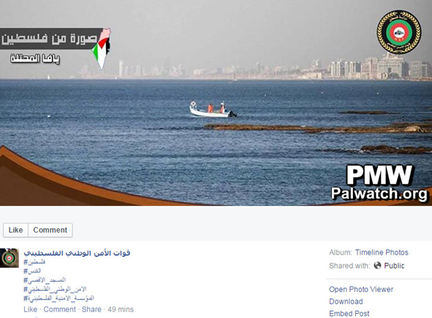 Text on image: “A picture from Palestine - occupied Jaffa.” [Facebook page of the Palestinian National Security Forces, Dec. 8, 2014] |