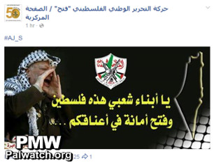 Text and image posted on Fatah’s Facebook page, “Fatah – The Main Page”