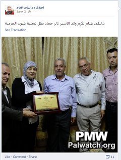 Ghannam honored Hamas bomb-builder for suicide terrorists Abdallah Barghouti, who is serving 67 life sentences for complicity in the murder of 67 civilians, by visiting his home and family.