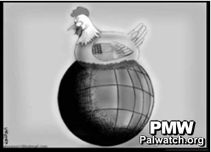 America depicted as chicken and world as eggAl-Hayat Al-Jadida, official PA daily |May 16, 2007America depicted as chicken and the world as its egg.