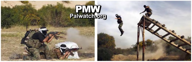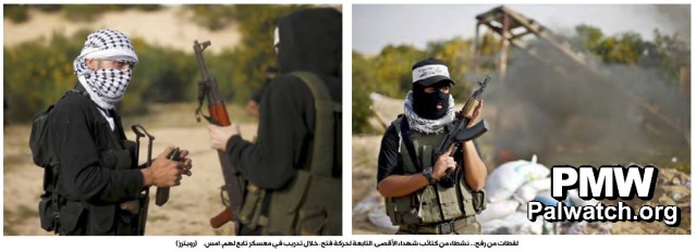 The pictures show armed terrorists from the Fatah Al-Aqsa Martyrs’ brigades undergoing military drills.