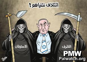 Fatah cartoon portrays Netanyahu surrounded by grim reapers