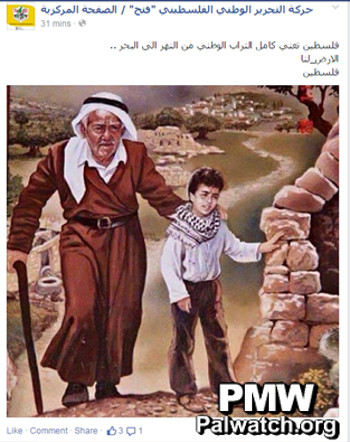 Fatah Facebook says "Palestine” is “from the river to the sea" (i.e., all of Israel)