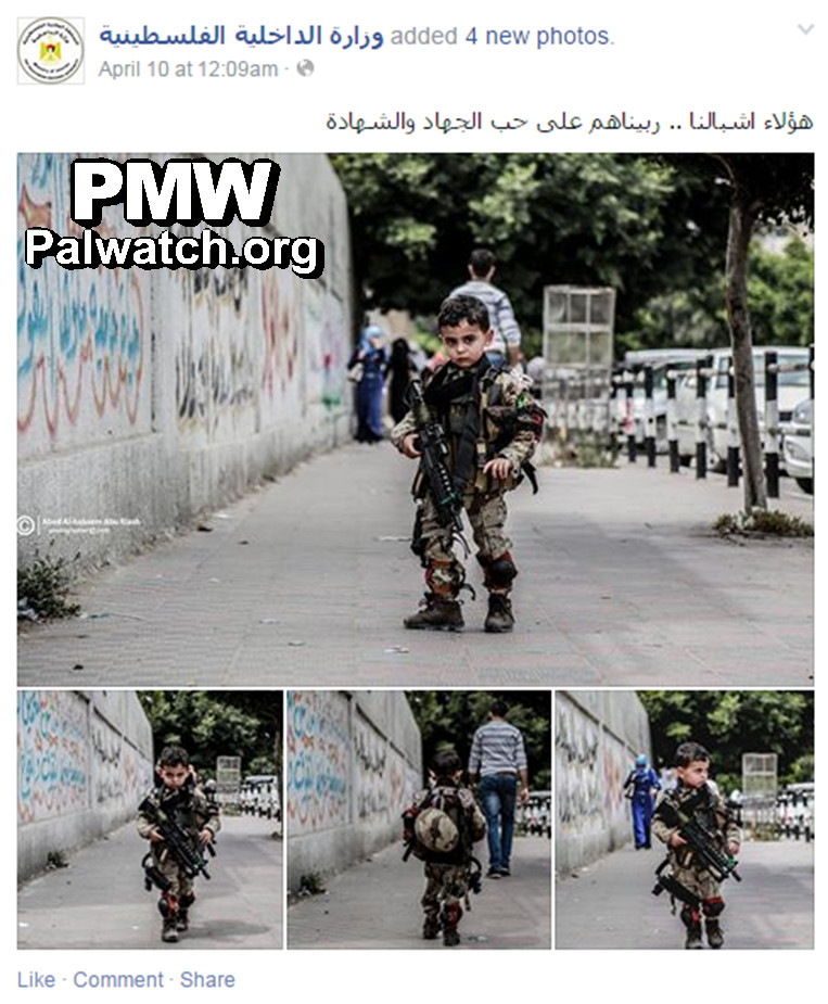 Hamas: We bring our kids up “on love of Jihad and Martyrdom-death”Hamas' Ministry of Interior, Facebook|Apr 10, 2015Posted text: "These are our lion cubs. We have brought them up on the love of Jihad and Shahada (Martyrdom-death)."Click to view bulletin » View analysis citing this item