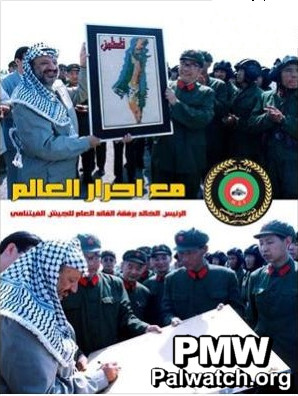 This post shows a photo of Yasser Arafat inside a map and the text: "On your path the revolutionaries walk"