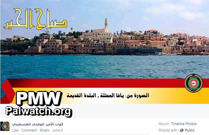 Palestinian Authority Security Forces Facebook posts pictures of "occupied Jaffa"