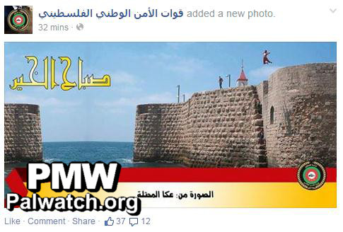 Palestinian Authority Security Forces Facebook posts photo of "occupied Acre"