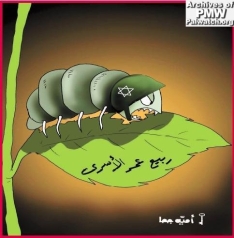 Israel as caterpillarAl-Hayat Al-Jadida, official PA daily |Aug 28, 2007Text on the leaf: "Youth of the prisoners"