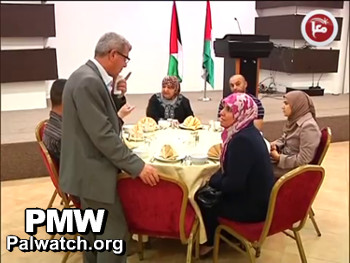 Ma’an TV host: “The suffering of the Abu Hmeid family from the Al-Amari [refugee] camp and the story of five of its sons, four of them serving life sentences, and the fifth who died as a Martyr, this suffering was felt at the fast-breaking meal of consuls and ambassadors to Palestine.”