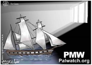 The image shows a boat with sails in the shape of a map “of Palestine” that includes the PA areas as well as all of Israel.