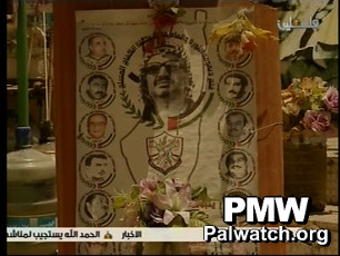 Palestinian Authority TV broadcast from cemetery includes poster with map erasing Israel and poster commemorating terrorist Dalal Mughrabi