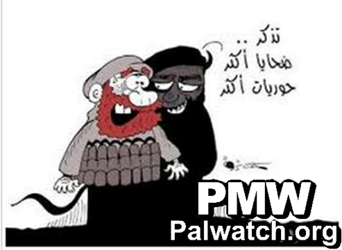 Contrary to the Palestinian Authority and Fatah policy of honoring Palestinian suicide bombers as "heroes," recently two cartoons mocked ISIS and other Islamic suicide bombers.One cartoon by a Yemenite artist published on Fatah's Information and Culture Commission's website ridiculed the way radical Muslim groups persuade suicide bombers - the aspiring "Martyrs" for Allah - with the promise of being rewarded with the 72 Dark-Eyed Virgins in Heaven upon completing their "mission." A satanic figure encourages a suicide bomber wearing an explosives belt with the following words:
