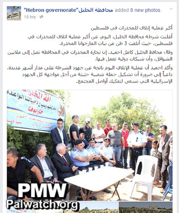 “The Hebron District Police declared the biggest drug destruction operation in Palestine today [July 27, 2015], in which three tons of marijuana were destroyed.