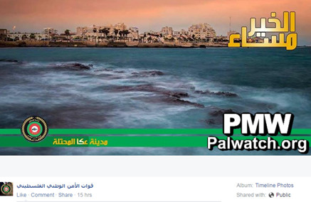 Palestinian Authority Security Forces Facebook post describes Acre as “occupied”PA National Security Forces, Facebook|Aug 9, 2015 Image and text posted on the Facebook page of the PA National Security Forces.Text at bottom of image: “Good evening. The occupied city of Acre.”