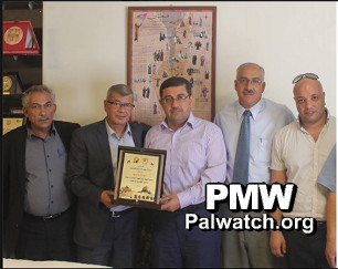“Karake and a delegation from the [PLO] Commission [of Prisoners’ Affairs] honored Zakariya Musleh, Aug. 24, 2015.