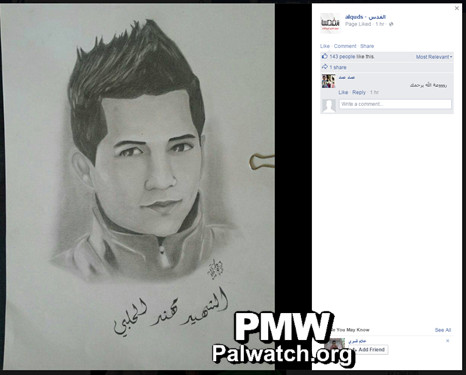 Most-read Palestinian paper posts portrait of terrorist killer of two on its Facebook page