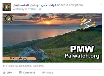 Palestinian Authority National Security Forces: Tiberias is “occupied”PA National Security Forces, Facebook|Oct 18, 2015 Text on image: “The lands of occupied Tiberias”