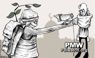 Palestinian Authority daily cartoon: Israel the aggressor gives false image as peace-seeker