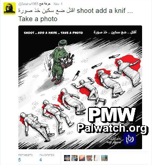 Fatah Twitter cartoon: Israel murders Palestinians and plants knives next to the bodies