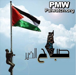 Text in picture: “Good morning” – the third letter in the word “morning” is drawn as a map of “Palestine” including both the PA areas and all of Israel.