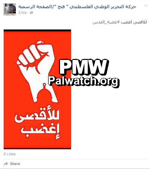 Fatah Facebook fuels tensions with picture of fist and Al-Aqsa Mosque with text “Rage for Jerusalem”