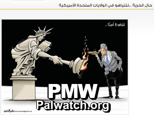 Fatah cartoon: Statue of liberty lights Netanyahu’s cigar