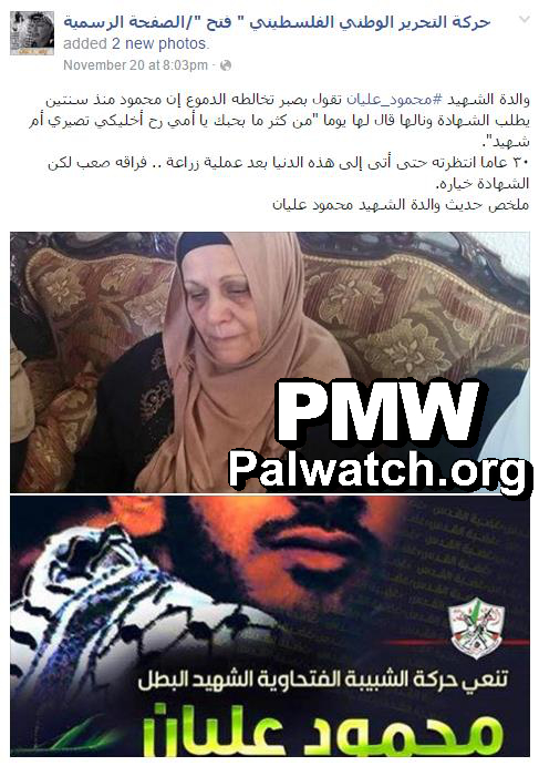 Fatah Facebook posts mother’s words expressing pride over her son’s death