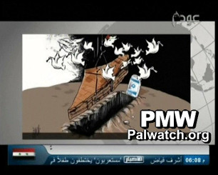 Official Fatah channel Awdah TV program Palestine and the Media, cartoon of the day