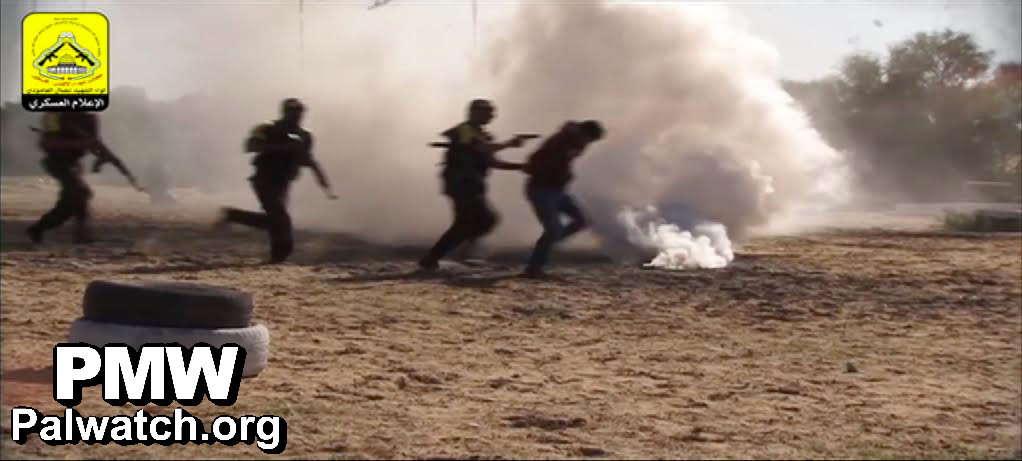 The video also shows Fatah terrorists practicing the kidnapping of an Israeli through a tunnel,