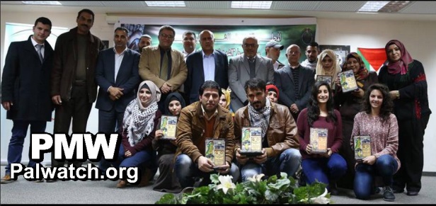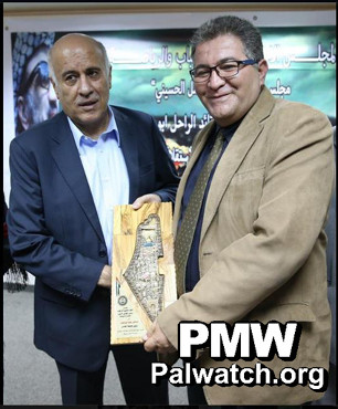 Fatah official at event commemorating Arafat awards plaques with map of “Palestine” erasing Israel