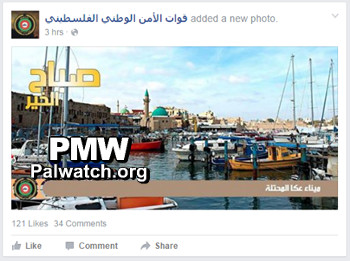 Palestinian Authority Security Forces posts picture of Israeli city of Acre and calls it “occupied”PA National Security Forces, Facebook|Dec 3, 2015 Text on photo: “Good morning, occupied Acre port”