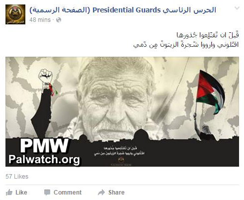 Palestinian Authority Presidential Guard: "Water the olive tree with my blood"