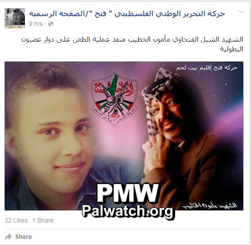 Fatah Facebook honors Palestinian stabber: “Martyr who carried out the heroic stabbing operation”