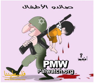 Fatah website publishes cartoon with IDF soldier holding dead child on his rifle