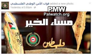 Palestinian Authority National Security Forces FB posts map of Palestine replacing Israel